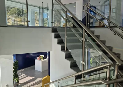 Σχεδιάζουμε και τοποθετούμε γυάλινες κατασκευές για κάγκελα, εσωτερικές σκάλες, χωρίσματα και ειδικές εφαρμογές. Χρησιμοποιούμε γυαλί υψηλής αντοχής και ασφάλειας, δημιουργώντας κατασκευές που αποπνέουν κομψότητα και μοντέρνο χαρακτήρα.